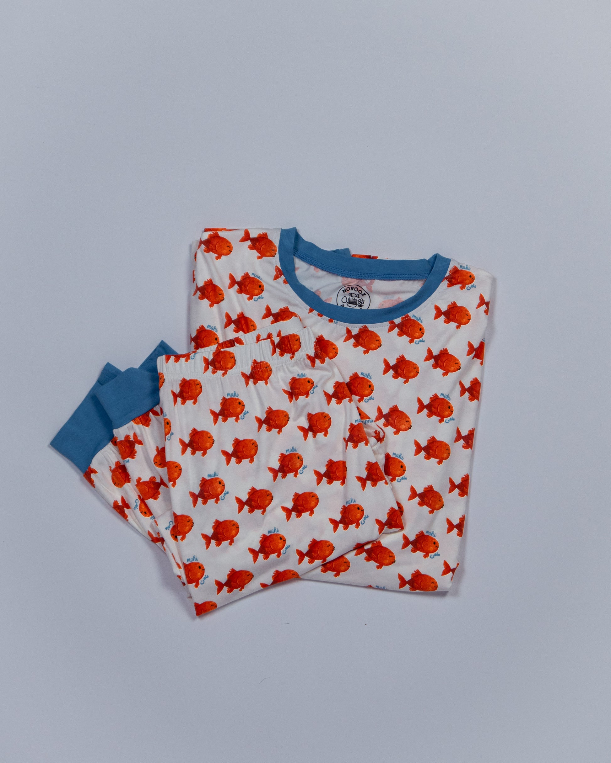 Celebrate Persian heritage in comfort with our “Mahi” Bamboo Pajamas for women. Designed by a Persian artists, the goldfish motif and “Fish / Mahi (ماهی)” details bring the spirit of Norooz to life. Made from luxuriously soft bamboo, this relaxed, breathable set combines modern comfort with cultural pride.
