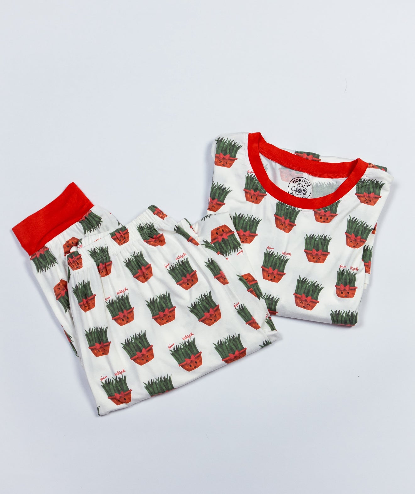 Celebrate Persian heritage in comfort with our “Sabzeh” Bamboo Pajamas for women. Designed by a Persian artists, the goldfish motif and “Sabzeh” details bring the spirit of Norooz to life. Made from luxuriously soft bamboo, this relaxed, breathable set combines modern comfort with cultural pride.
